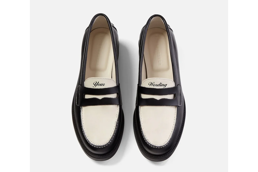 You can choose either the black and white shoe, or the chestnut and white, as well as the text (up to 10 characters per shoe), font and colour. At £400, the loafers are more expensive than Duke + Dexter’s classic styles, which cost between £250 and £270, but the custom detail makes the shoes all the more special.